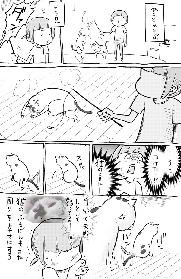 一方、遊んでいる途中にこけて、不機嫌な猫。