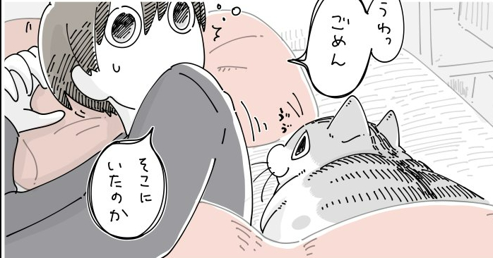 【癒やし】朝起きようとすると、後ろで猫が寝ており…何気ない朝のワンシーンに猫好きたちから共感の嵐